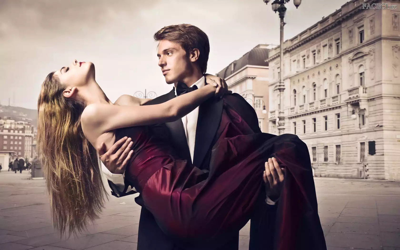 Ręce, Bordowa, Para, Muszka, Garnitur, Ulica, Miłość, Sukienka - faceci.biz