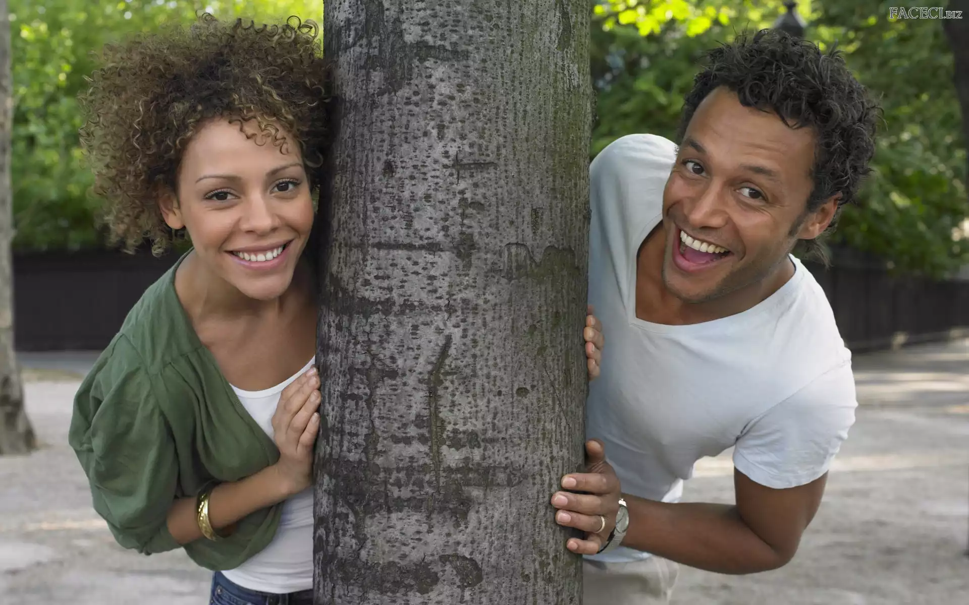 Zabawa, Radość, Drzewo, Para, Uśmiech - faceci.biz